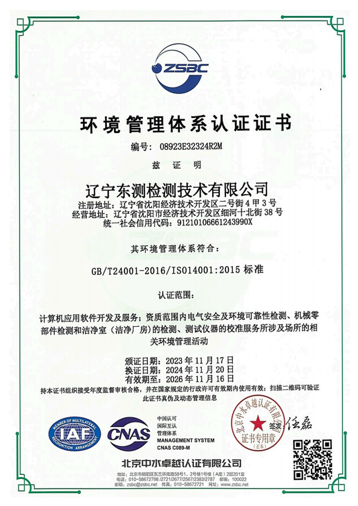 遼寧東測檢測技術(shù)有限公司成立于2007年6月21日,專注于為客戶提供計(jì)量、檢測以及技術(shù)咨詢與培訓(xùn)的第三方計(jì)量檢測機(jī)構(gòu)。遼寧東測檢測技術(shù)有限公司通過了中國合格評(píng)定國家認(rèn)可委員會(huì)認(rèn)可(CNAS),獲得檢驗(yàn)檢測機(jī)構(gòu)資質(zhì)認(rèn)定(CMA),憑借著高效的服務(wù)網(wǎng)絡(luò)、雄厚的技術(shù)實(shí)力以及全面的業(yè)務(wù)范圍,本著“科學(xué)、公正、準(zhǔn)確、真誠”的質(zhì)量方針,為社會(huì)提供優(yōu)質(zhì)計(jì)量檢測服務(wù),打造國內(nèi)具有價(jià)值的計(jì)量技術(shù)機(jī)構(gòu)。